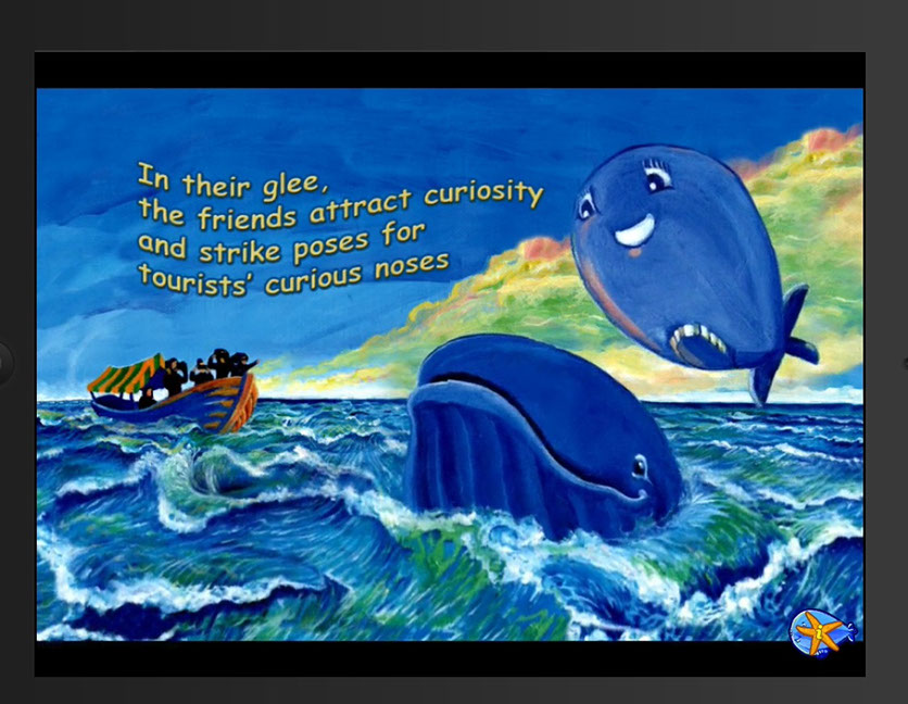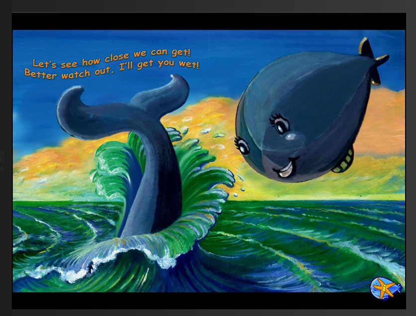 This is an interactive love story about two very different friends, a blimp and a whale.