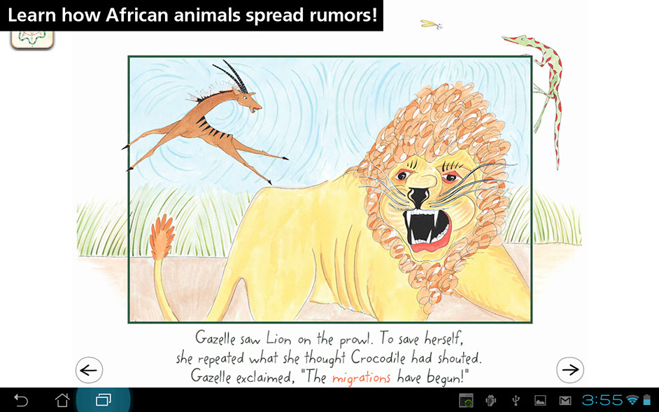 Launching with The Jungle Grapevine, that tells the story of eight African animals who learn about the dangers of rumors through an outrageous game of telephone.