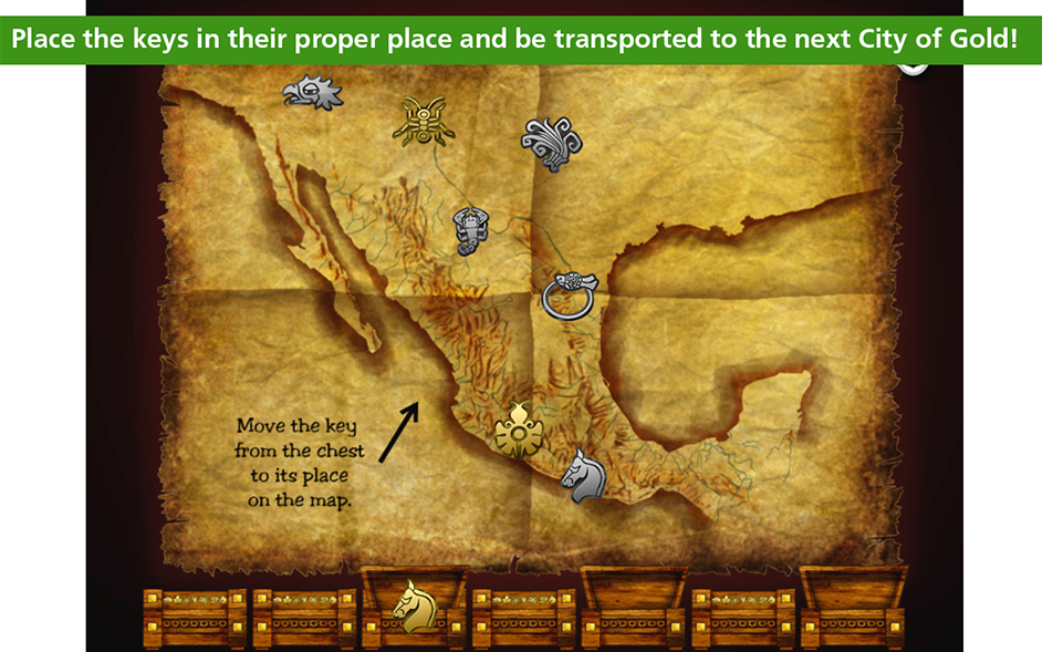 You then randomly open treasure chests, revealing gold keys to place back on the map in order to transport to the next City of Gold.