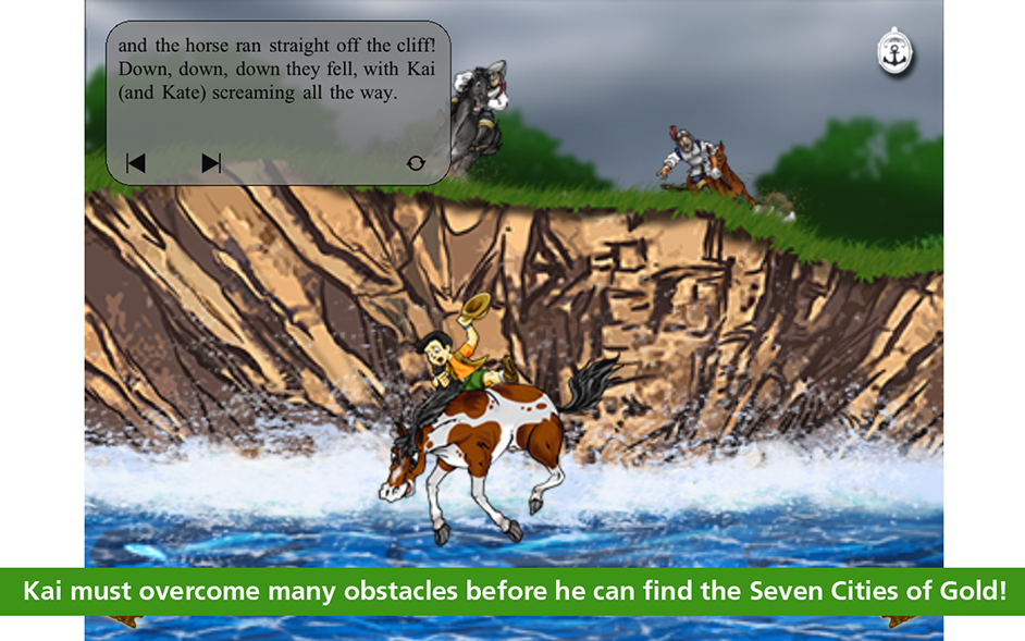 Treasure Kai and the Seven Cities of Gold follows the adventures of Kai as he goes back in time to race Francisco Coronado to find the legendary Seven Cities of Gold. Treasure Kai is a twist on choose-your-adventure where every reading of the story is different. It combines interactive storytelling and many games with an original score. Open treasure chests, place keys on the map and see if your memory can get Kai home! Unique read-play fun.